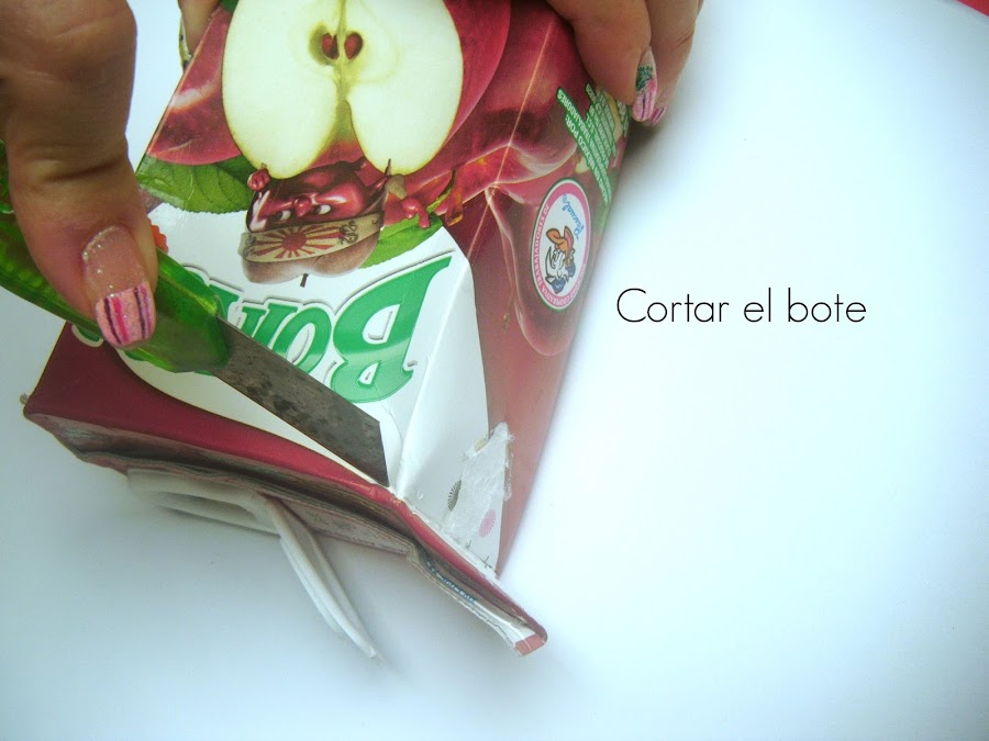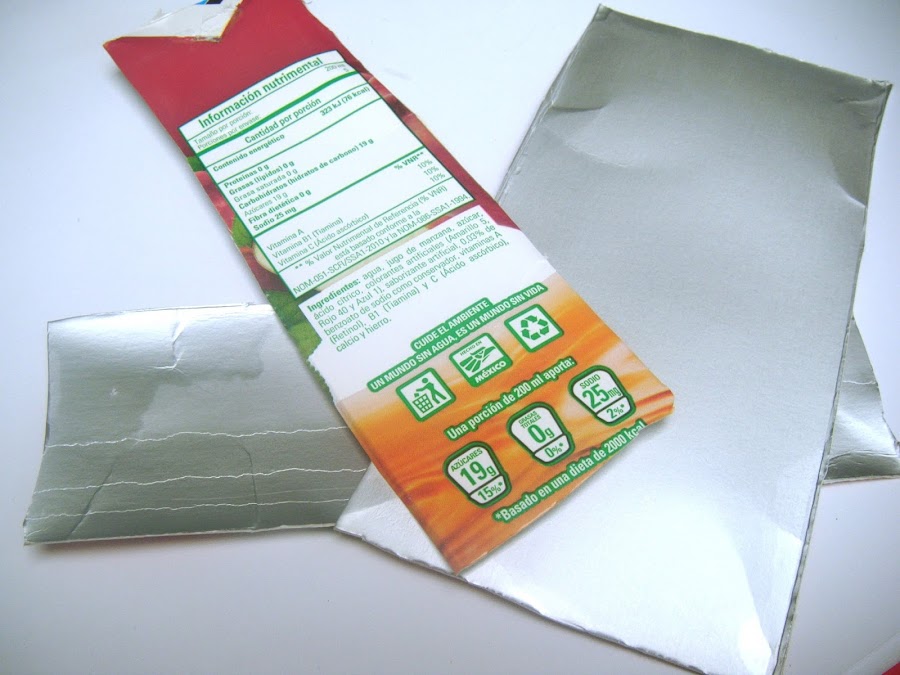 1) En éste tutorial vamos a utilizar el bote de tetra pak, (previamente enjuagado) lo vamos a cortar para abrirlo.