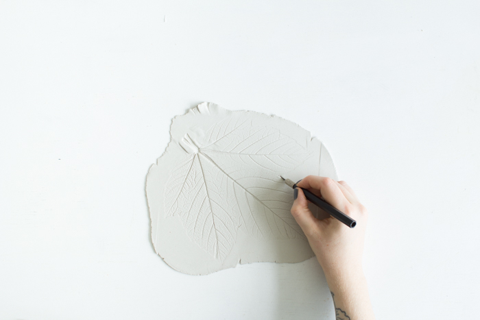 3.- Levantamos con cuidado y vamos cortando la silueta de la hoja con el cúter de precisión.