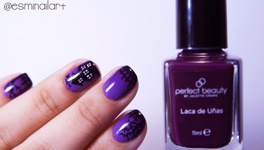 Para el degradado (aunque no se nota demasiado en fotos...) utilicé dos de los nuevos tonos de la colección Lady Grunge de Perfect Beauty by Juliette Crowe: 06 Lila y 13 Púrpura. Dentro de poco subiré en mi canal de YouTube (¡¡subscribiros!!) un tutorial de cómo realizo mis degradados.