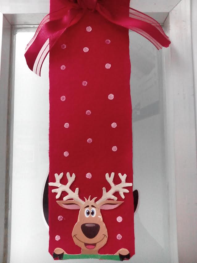 Hoy les traigo un #DIY sencillo y fácil, un adorno navideño para colocarlo en la puerta hecho con fieltro y figuras de cartón.