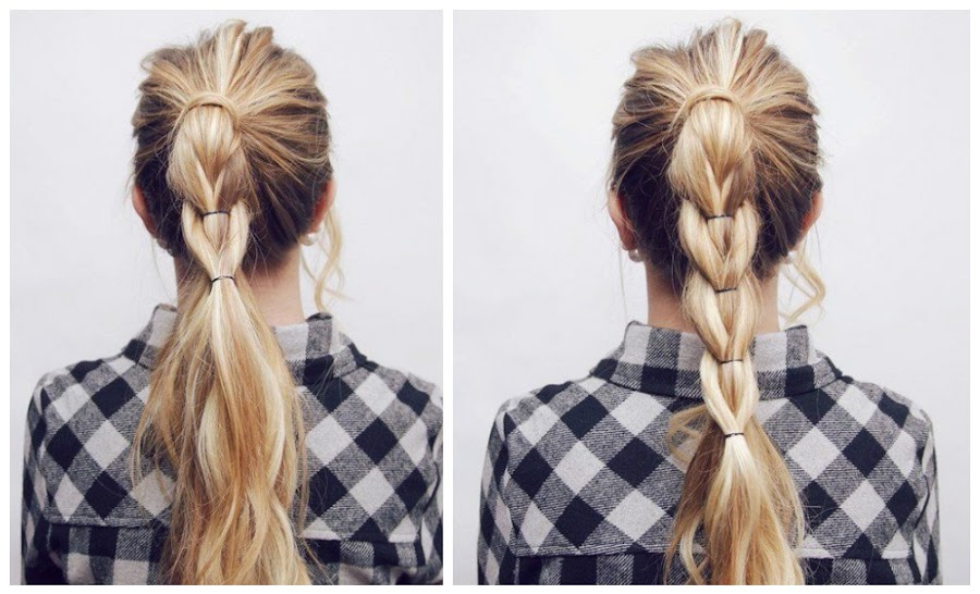 ¡Recuerda! 1 vuelta de trenza y atamos el cabello con una bandita. Luego repetimos: una vuelta de trenza y otra bandita.