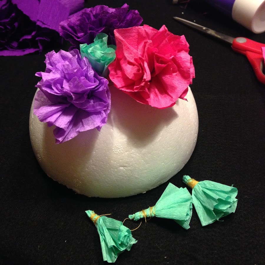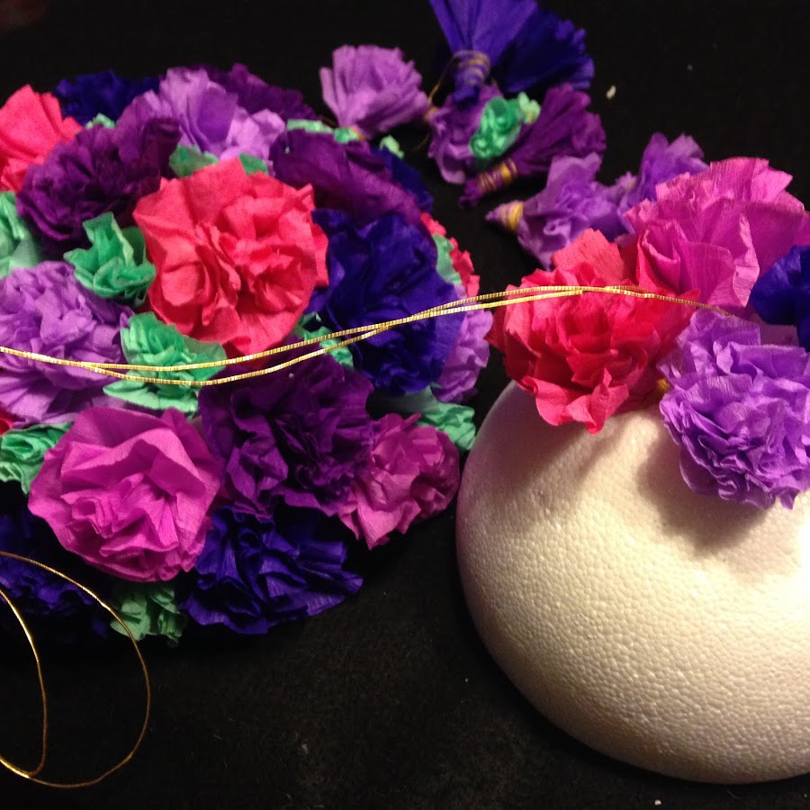 Atar la flor con hilo de coser para poder insertarla en el orificio que se hizo en la esfera