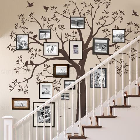 Si quieres dar algo más de vida a tus paredes, por ejemplo para la habitación de un niño, y también quieres añadir fotos, esta sería la solución perfecta. Puedes agregar un vinilo a la pared y colgar después las fotografías donde prefieras. El resultado es una composición muy divertida.