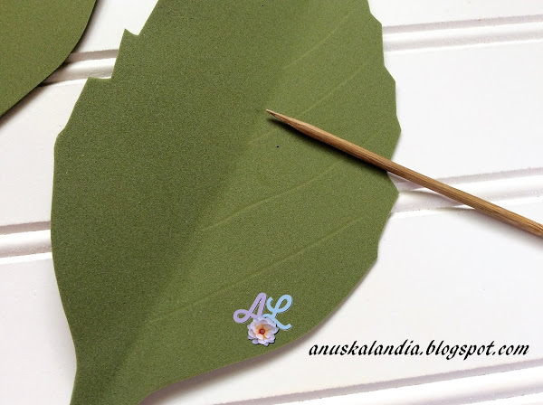 22.- Con un palo de brocheta, haz rayas imitando las nervaduras.