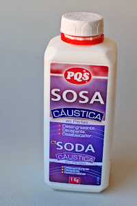 - Sosa cáustica: debe ser muy pura. La del Alcampo es la que he usado y es 100% pura sosa.