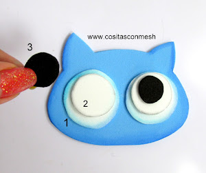 2.- Ya que tengas todos los moldes del buhito cortados el foami celeste, procedo a decorarlo.