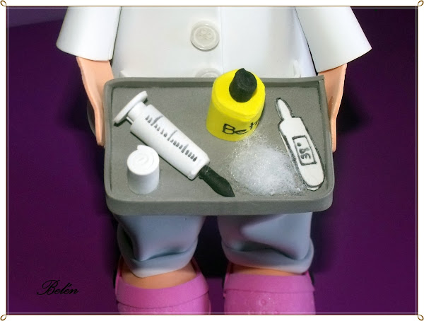 Pues esta es la sorpresa que quise darle a Yoli, estudiante de enfermería, en su 21 cumpleaños. El bizcocho que le puse es el genovés de chocolate blanco, receta del blog corazondeazucar,que tiene unas recetas impresionantes.Es mi primera figura con pasta de azúcar y tiene muchos defectos, pero al menos de lejos parece una enfermera,jiji. Bueno, lo importante es que le gustó mucho. Aquí unas ...