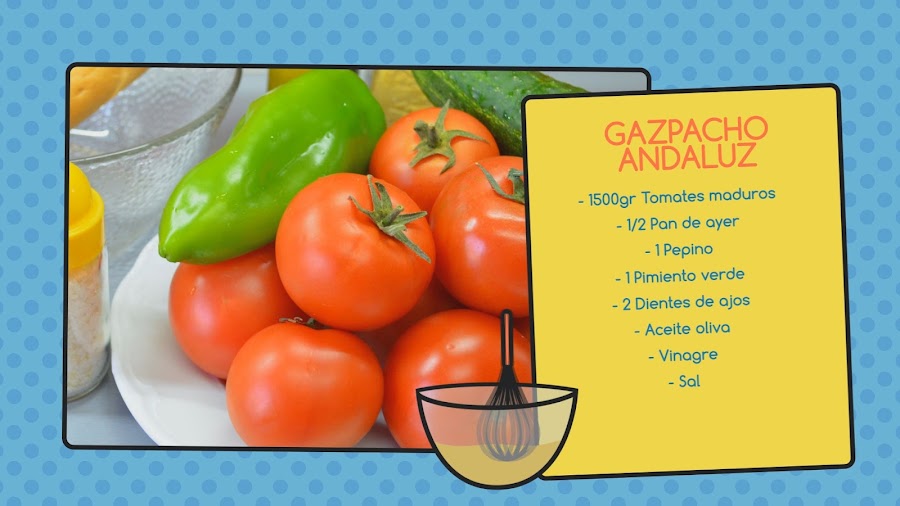 Ya sabéis que el gazpacho no es más que una sopa fría de tomate al que se le añaden diferentes verduras y que se aliña con aceite, vinagre y sal. Las combinaciones pueden ser realmente sorprendentes e incluso se pueden hacer gazpachos con base de otras verduras o frutas que no sean el tomate. Además de acompañarlos de muy diferentes guarniciones.