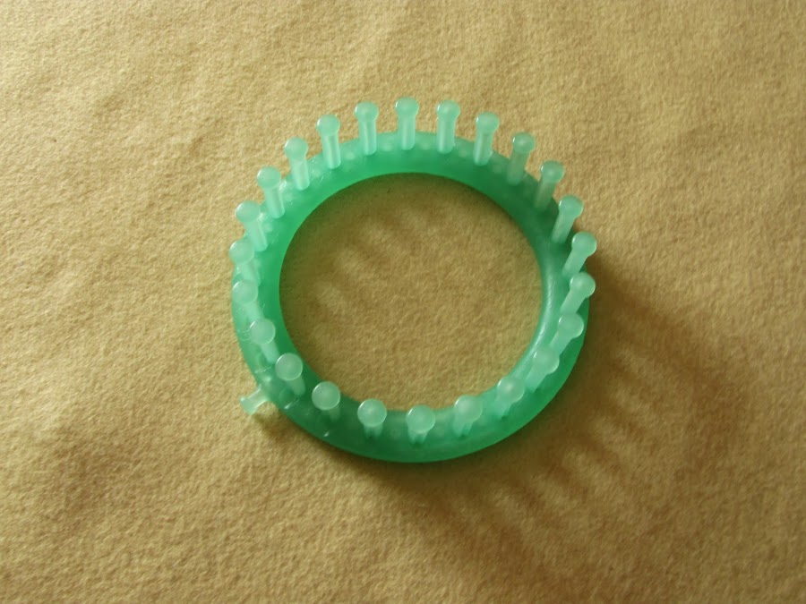 TELAR CIRCULAR DE 14 CM : usado para elaborar gorros para bebé. El tejido obtenido es muy similar al hecho con 2 agujas, solo que con este telar es mas rápida la elaboración de la prenda. Los hay de diversos tamaños, donde el mas grande puede ser empleado para hacer bolsas tipo costalito.