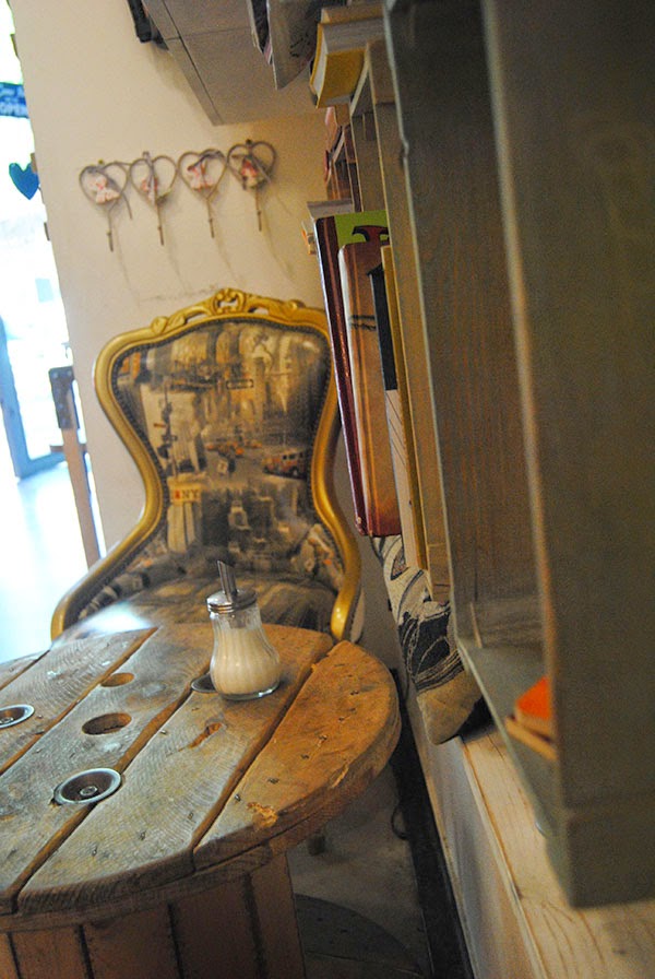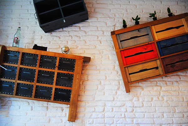 Espejos, partes de muebles reciclados, corazones, pizarras... de todo cuelga de las paredes de Camarote Vintage.