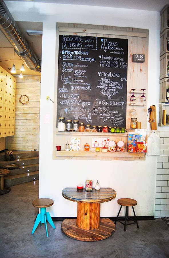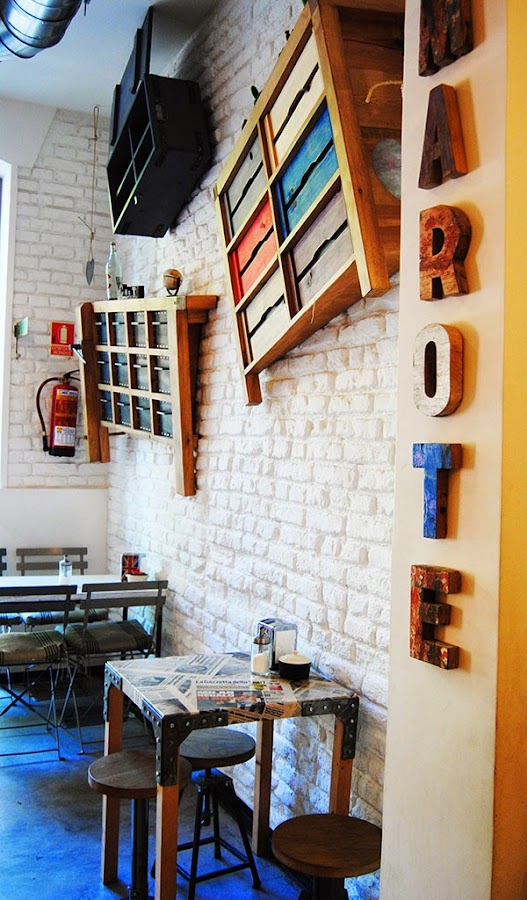 Tienen varios espacios llenos de detalles creando ambientes diferentes. Una terraza, mesas muy cerca de las ventanas y un apartado en la zona del fondo.