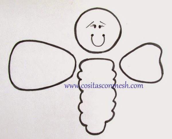 14.-Con la limpiapias o chenille ,hago las antenitas y las pego detrás de la cabeza.