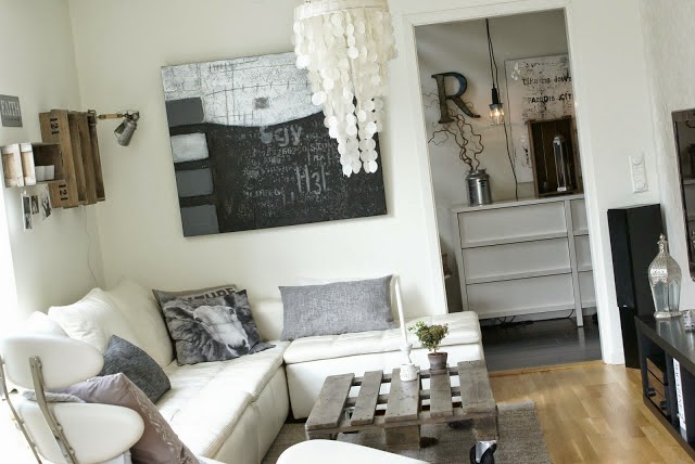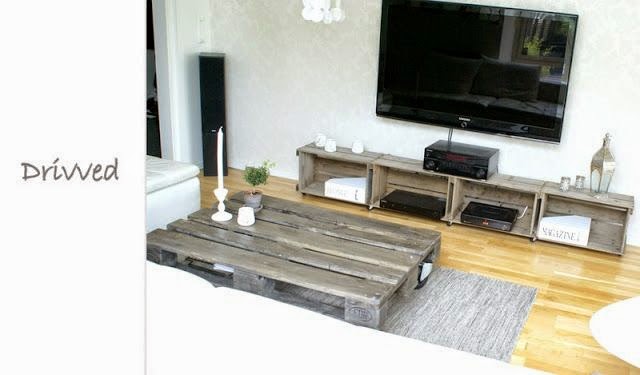 Uno de los objetos que están en plena tendencia son las cajas de madera y los palets, y este salón esta decorado con ambos, pero "sin quedar cutre , sino elegante".