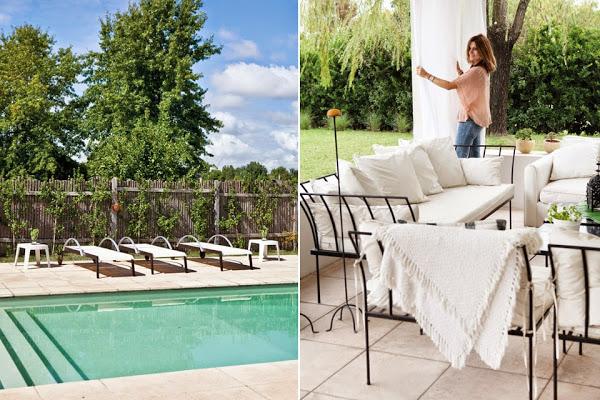 De ella destacaríamos que en casi todas las estancias se combina el mobiliario de color blanco con otras grandes piezas de madera que adquieren mucho protagonismo y consiguen un binomio perfecto. Nos gusta especialmente la estantería que está adosada a la escalera, la pequeña mesa de estudio, las dos habitaciones de las hijas (una de 17 años y otra de 13), en las que destacan la guirnalda de luces y los detalles en color rosa, y, cómo no, la terraza y esa impresionante piscina... ¡Ay, todavía nos falta mucho para que llegue el buen tiempo! Pero mientras tanto ver esa terraza es de lo más relajante =)