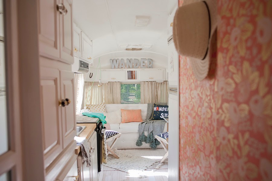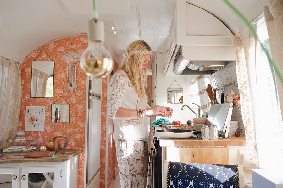 He de reconocer que para esta temporada estival y en primavera también, siento debilidad por las caravanas y el mundo de los viajes "on the road". Siempre que encuentro una vivienda de este tipo os la muestro y hoy quiero descubriros la vida en esta casa rodante de la mano de su dueña Sarah Schneider, una apasionada del arte, del diseño y de renovar cosas, y que se lanzó a restaurar (con ayuda de su marido), esta estupenda autocaravana en origen vieja y oxidada. Una airstream con todo lo necesario y ese aire tan bohemio tan característico de las "casas" de este tipo. Con todas las paredes de blanco para crear sensación de luminosidad y amplitud, una de las zonas rompe con esta gama con un papel vintage en tonos coral, a juego con la tarima de madera en tonos claros, para crear sensación de calidez. Arregló las cortinas y diseñó una nueva cocina abierta, instalando una zona de estar con un sofá-cama decorado con textiles de diferentes texturas, estampados y creo una vivienda con todo lo necesario para el día a día.