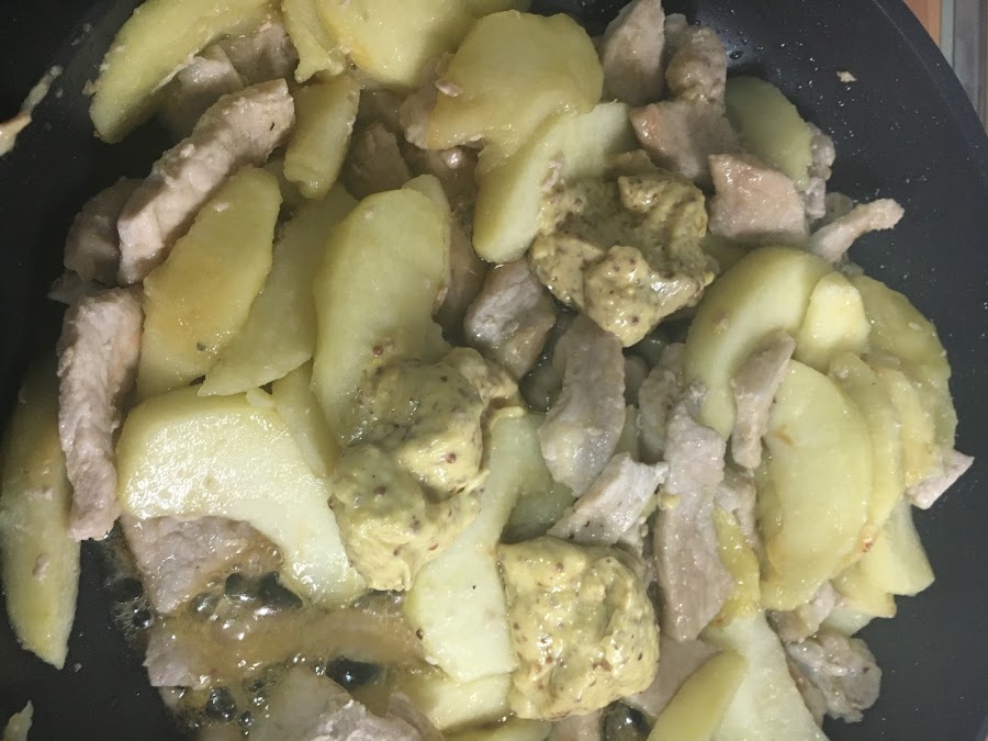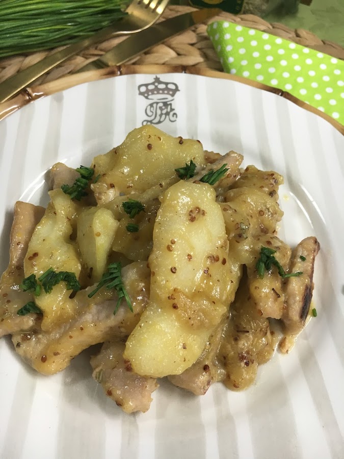Esta receta se hace en un instante, es muy fácil y está muy rica. La combinación de manzana con cerdo es exquisita y el toque de mostaza antigua - con granitos- junto a la dulzura de la miel le hace delicioso.