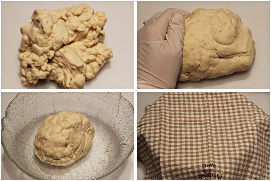 Retira la masa del vaso, quedará una masa muy suave, forma una bola con las manos. Deja reposar un mínimo de una hora en un bol y tapada con un paño de cocina.