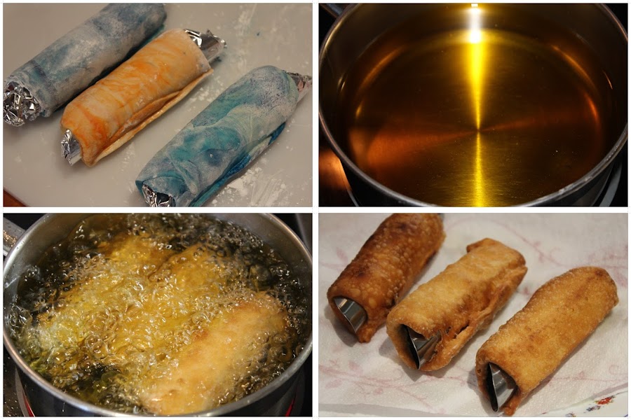Deberás disponer de tiempo porque son bastante laboriosos. Primero deberás formar la masa de los gaznates, dejarla reposar 1 hora, y luego formar los rulos y freírlos. La masa me quedó un poco gorditra, lo ideal es dejarla lo más fina posible porque queda muy crujiente.