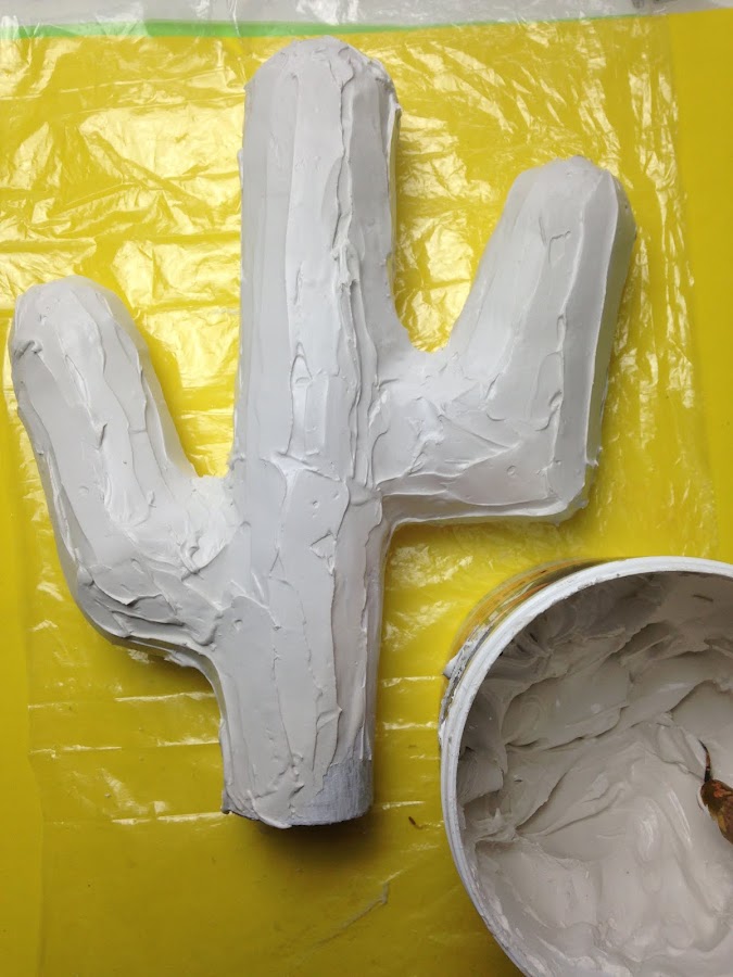 Luego se hace una cartapesta cubriendo con papel toda la superficie del cactus.