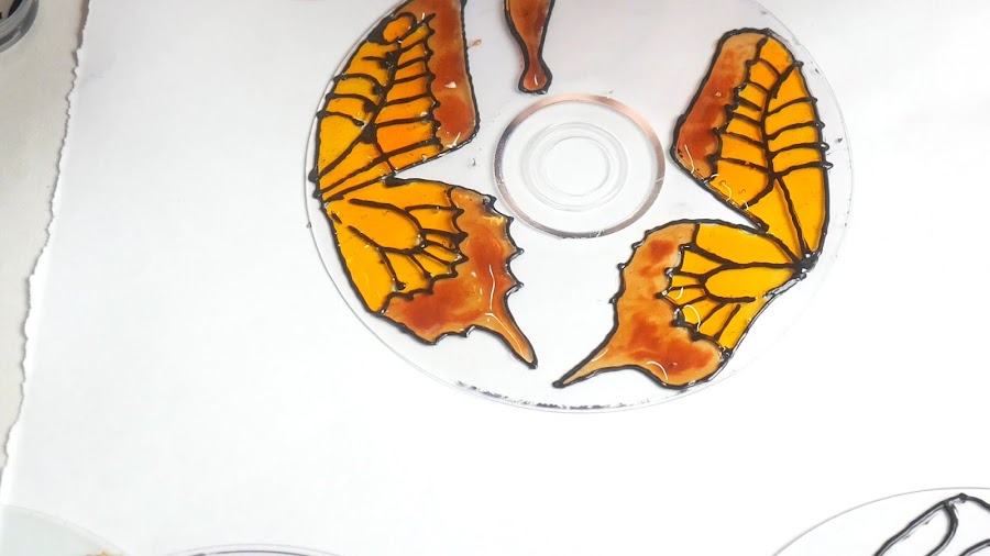 Esta mariposa la voy a pintar con la laca que enseñe a hacer con el pegamento de silicona, va a quedar una vez seca como si fuera vitrofusión.
