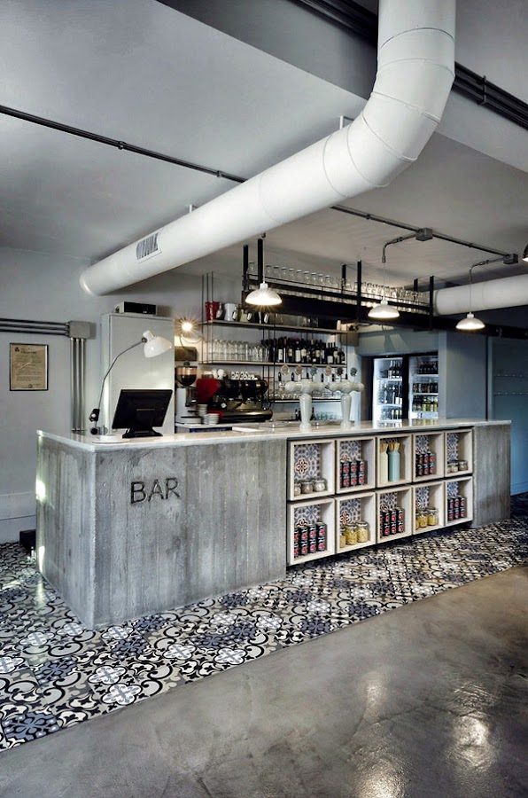 El restaurante se ha creado y diseñado en varios espacios, de forma que han sido divididos y diferenciados por el suelo ya sea en microcemento, madera e incluso baldosa hidraúlica, que otorga un punto vintage perfecto!