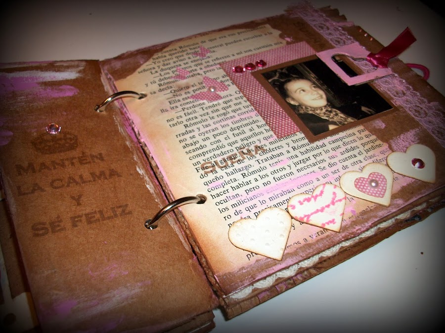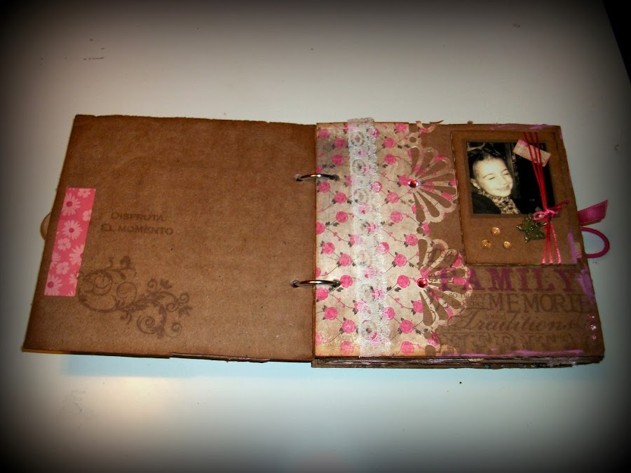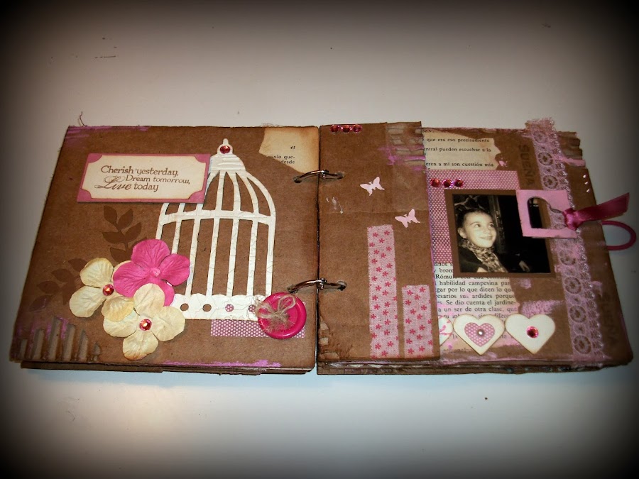 Me encanta usar materiales reciclados, cuando empecé con el scrap no tenia muchos materiales propios de scrapbooking así.