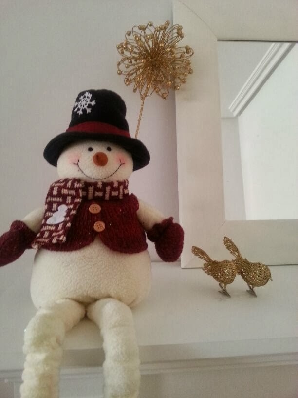 El muñeco de nieve también es de Primark (de hace unos años pero ahora los tienen similares) y los pajaritos (que compré en dorado y en plata) son de Tiger; la rama con la flor de Leroy Merlin del año pasado.