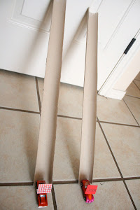 Un trozo de cartón, canutillos de cartón del papel higiénico, unos círculos de cartón coloreados como los aros olímpicos y a probar puntería y habilidad.