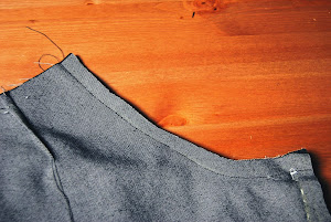 Montamos la vista/forro del canesú y cosemos toda la parte exterior y montamos la cremallera invisible. (Perdonad, pero las fotos que hice son indescriptibles).
