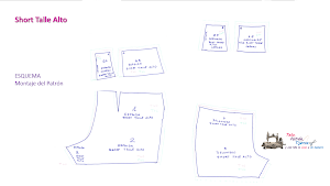 Primero, como siempre, montamos y cortamos el patrón para seguir el esquema de corte y obtener todas nuestras piezas del pantalón.