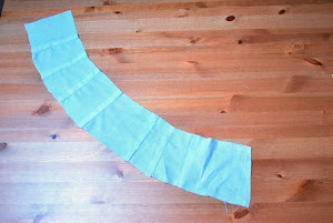El canesú va con un forrito/vista para ocultar las costuras, por lo que repetimos todo el proceso del montaje, cosido y sobrehilado del canesú.