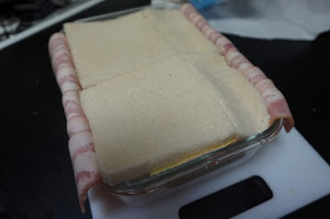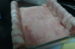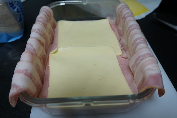 Cerramos el pastel con las tiras de bacon de los lados.