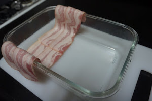 Ponemos en el centro unas tiras de bacon.
