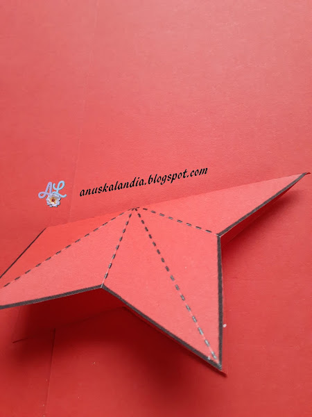 Imprimimos el molde, en el color de cartulina de nuestra preferencia, dos veces. Con el boleador de manicura u otra herramienta, utilizado una regla, marcaremos todas las líneas discontinuas. Procedemos a doblar. Nos tienen que quedar los dobleces como se ve en la foto.