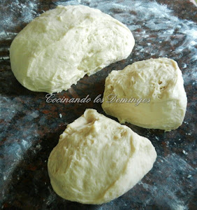 Con un cuchillo engrasado vamos partiendo la masa, primero a la mitad, después en cuartos y así continuamos hasta obtener entre 9 y 12 porciones.