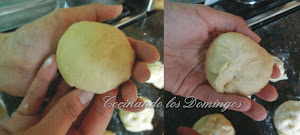 Con las manos untadas de harina le damos forma de bolitas haciendo una especie de pliegue o pellizco en la parte inferior.