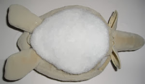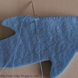 Poner un poco de relleno de fibra. Cosa las aletas y corte en zigzag las aletas.